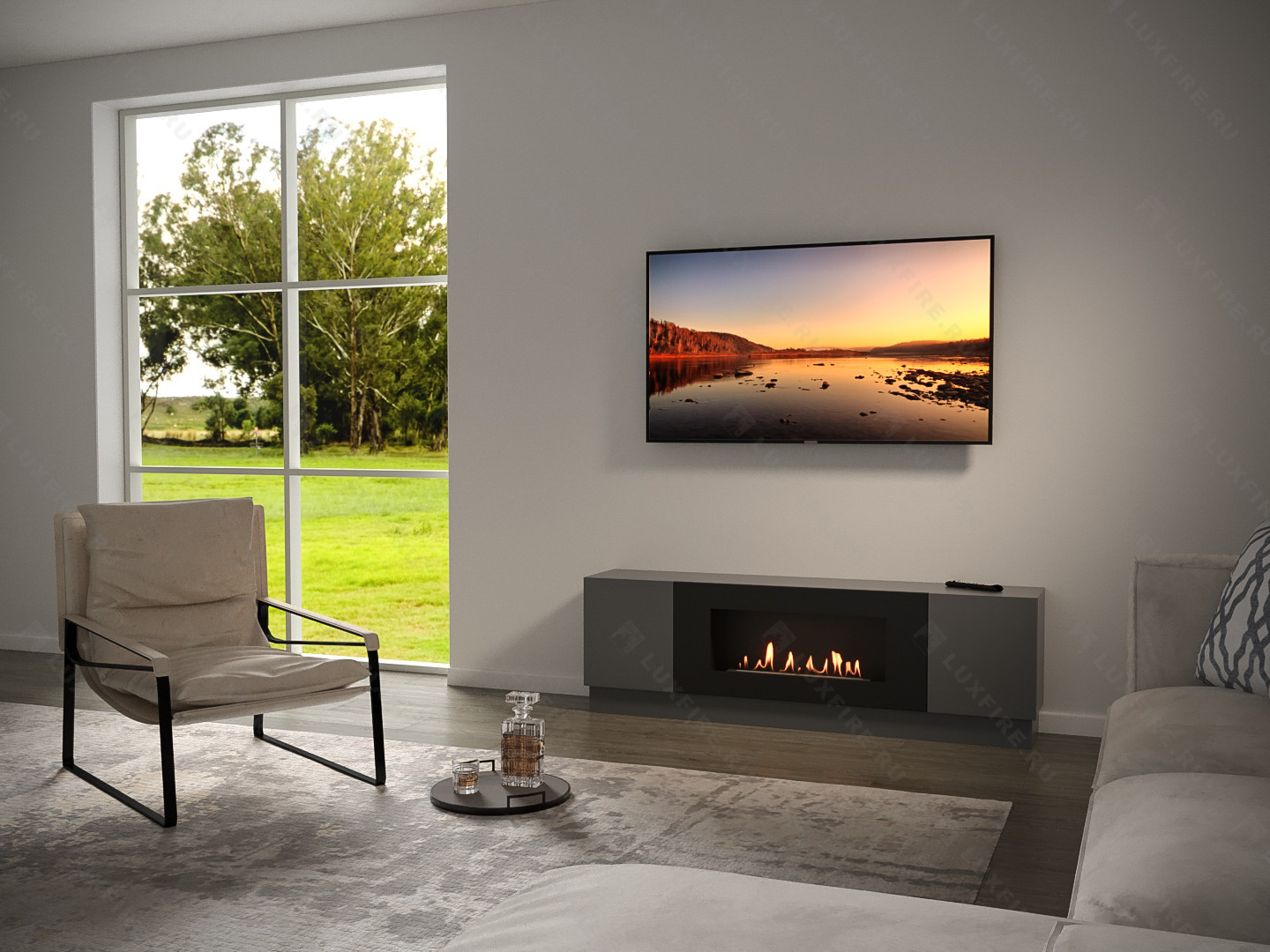 Тумба универсальная Lux Fire "Байкал" 1600, графит, с биокамином 900