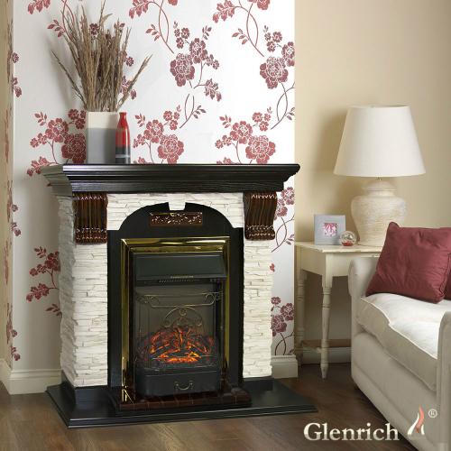 Каминокомплект Glenrich Арочный Мисхор (дуб)+Majestic Brass